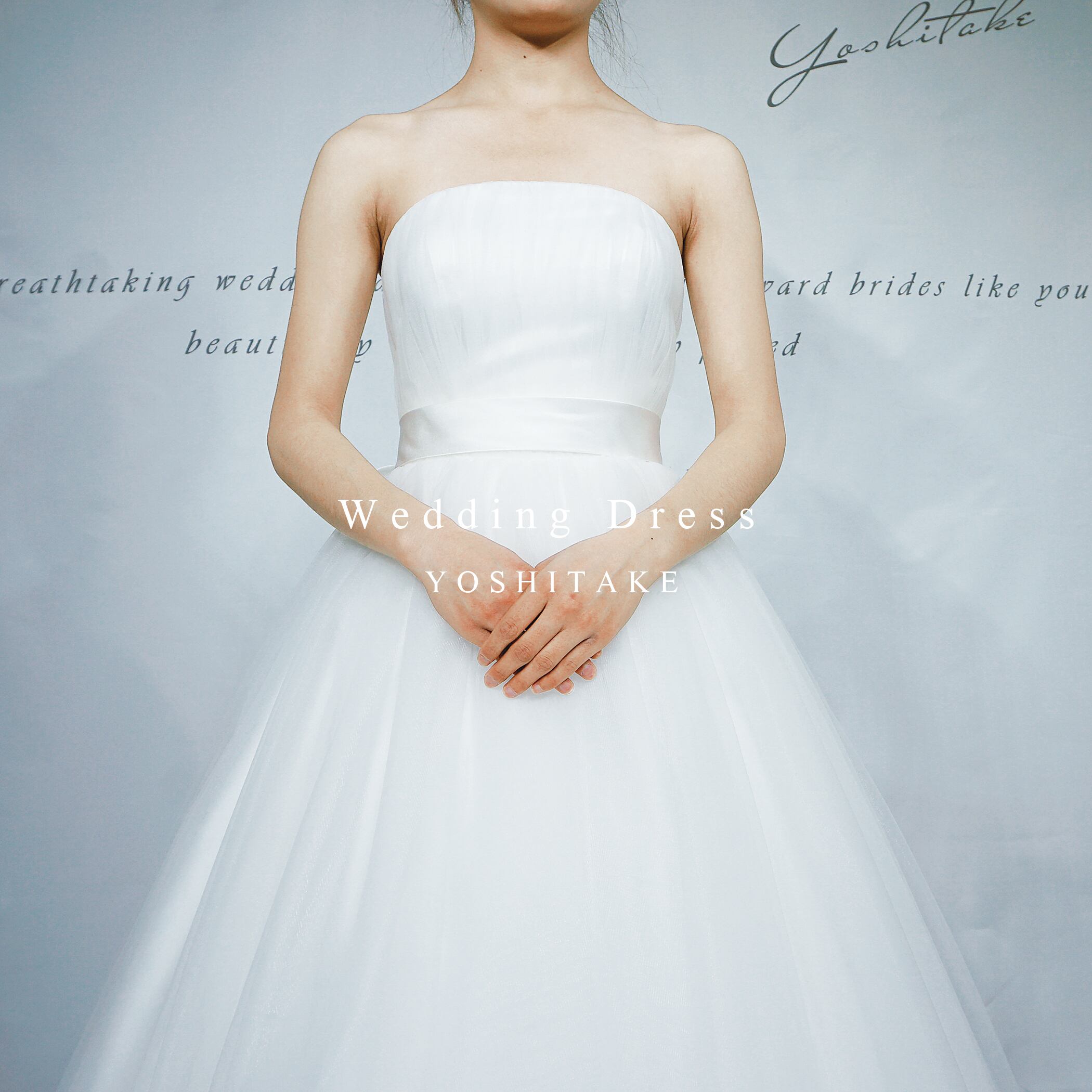繊細なチュールの軽やかさと、優雅に広がるトレーンがドラマチックな雰囲気を演出します。オフショルパーツは取り外し可能。