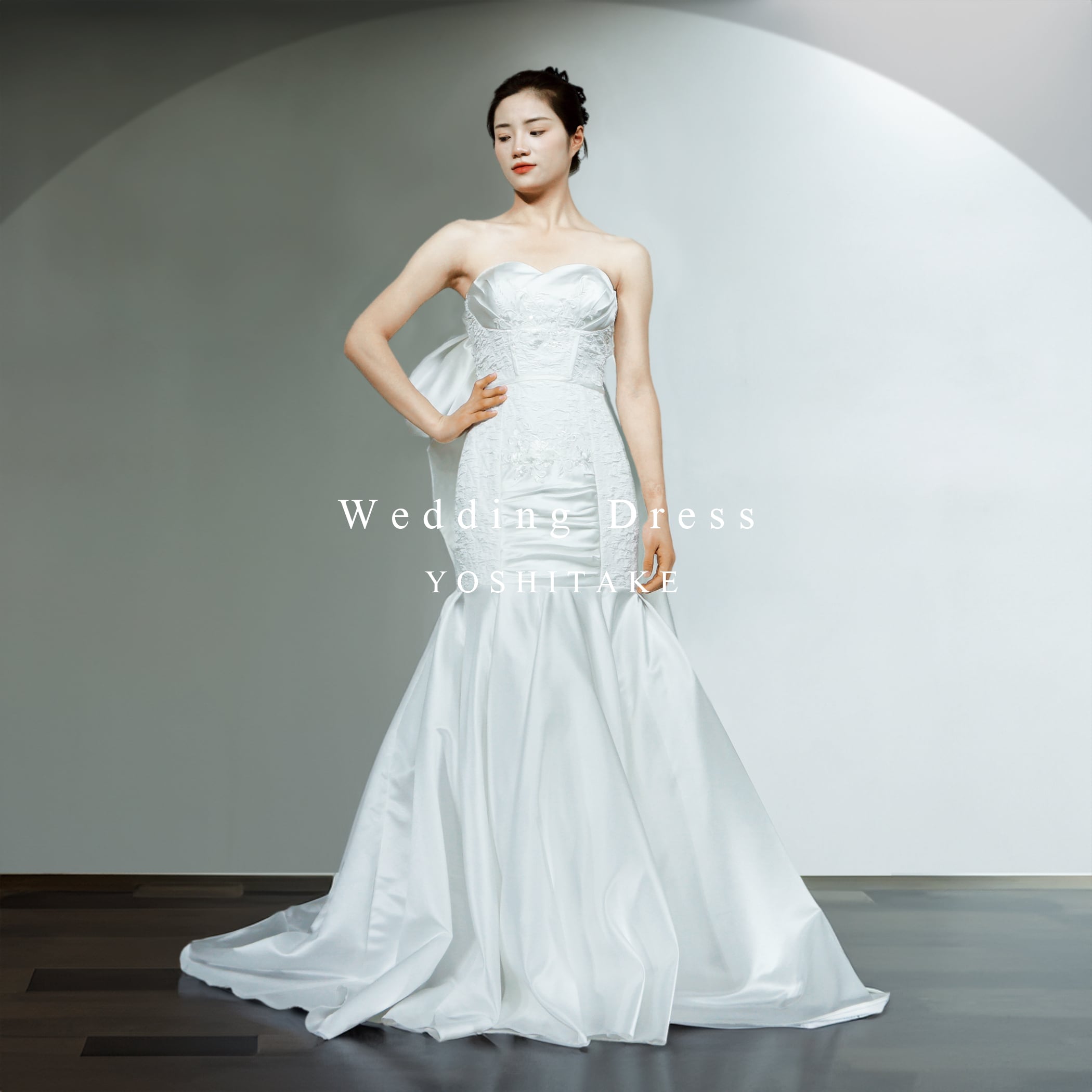 胸元に繊細に施されたレースと、美しいシルエットが女性らしさを引き立てるマーメイドドレス。