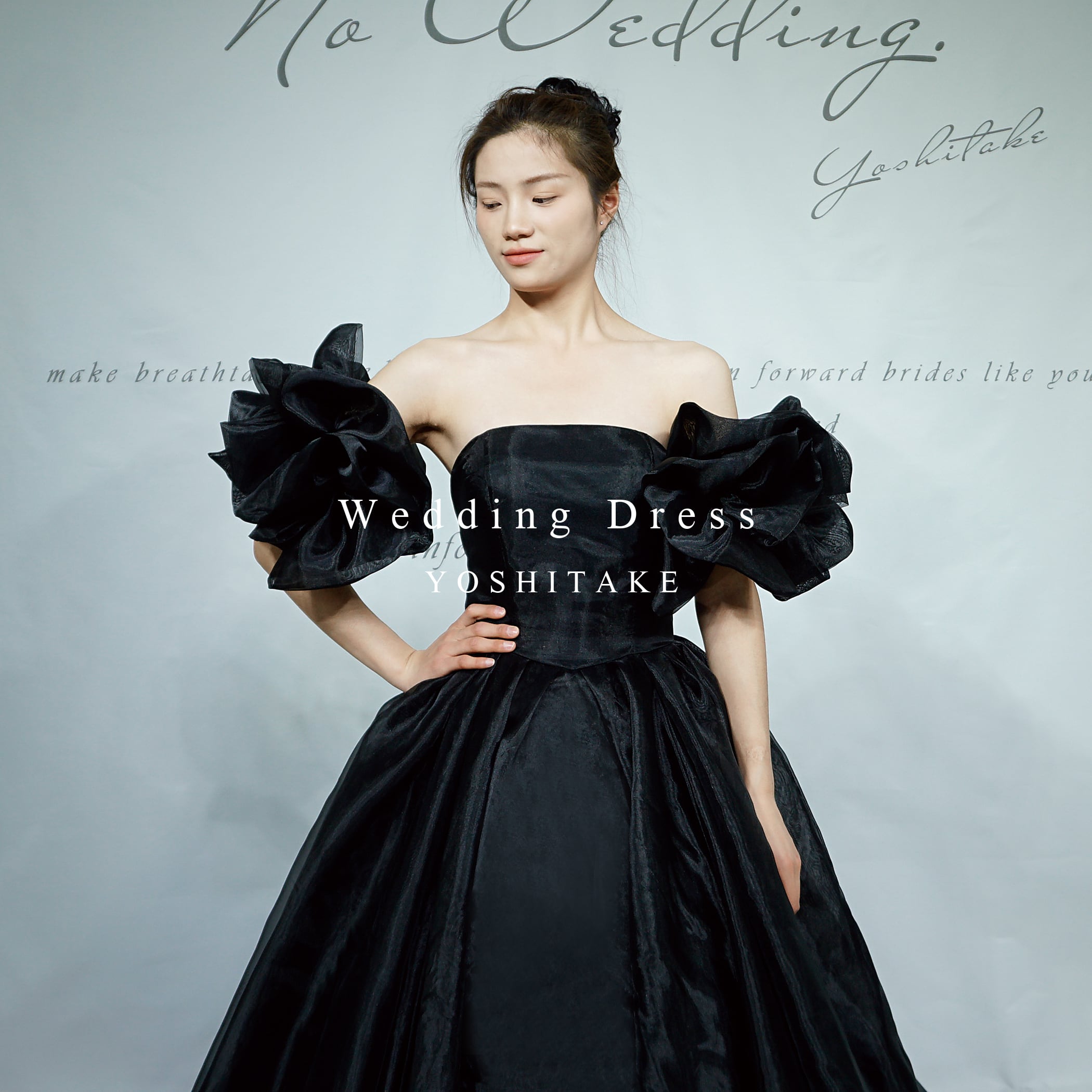【サンプルドレス】ウエディングドレス(無料パニエ) ウエディングドレス.ブラック.カラードレス.Aライン.オーガンジー.Y2514