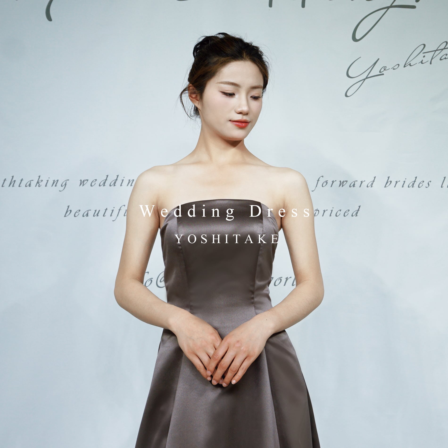 重厚感のあるブロンズの様なダークブラウンが、洗練された大人の女性を演出。王道のAラインスカートは、動くたびに優雅な輝きを放ちます。取り外し可能なオフショルダーパーツには煌めくビジューを施しました。