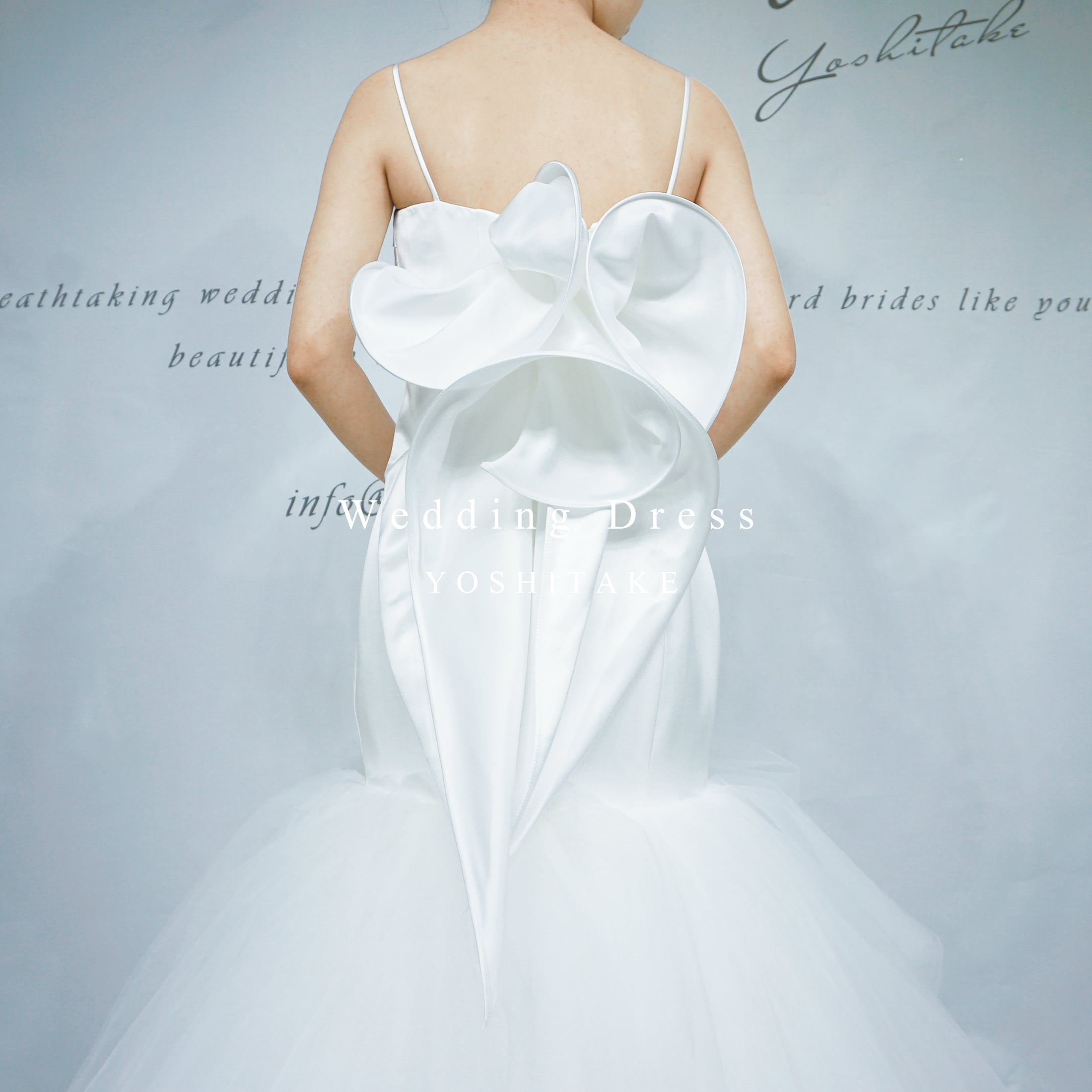 【オーダー制作】ウエディングドレス ウエディングドレス.白.マーメイドドレス.サテン&チュール.リボン ※制作期間4週間から8週間 Y2416
