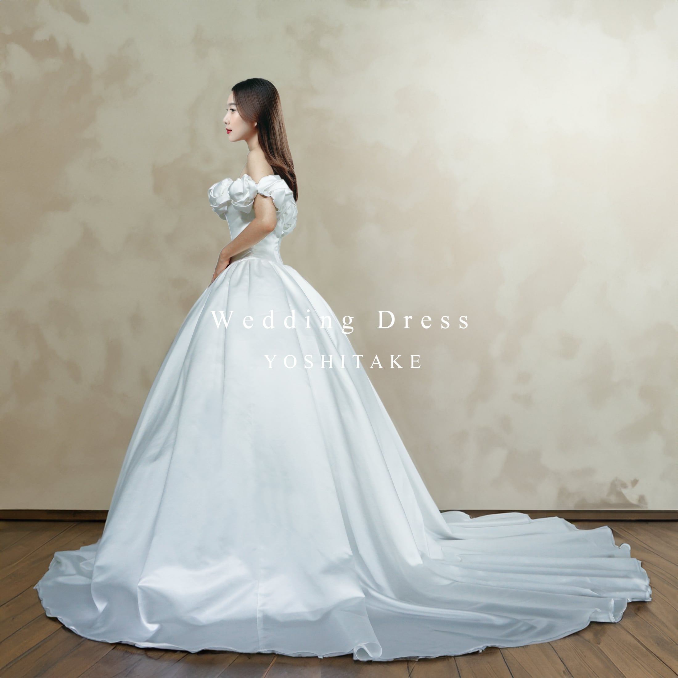 【アウトレット】ウエディングドレス(無料パニエ) ウエディングドレス.白.サテン.オフショルダー.プリンセスライン.Y2626-1