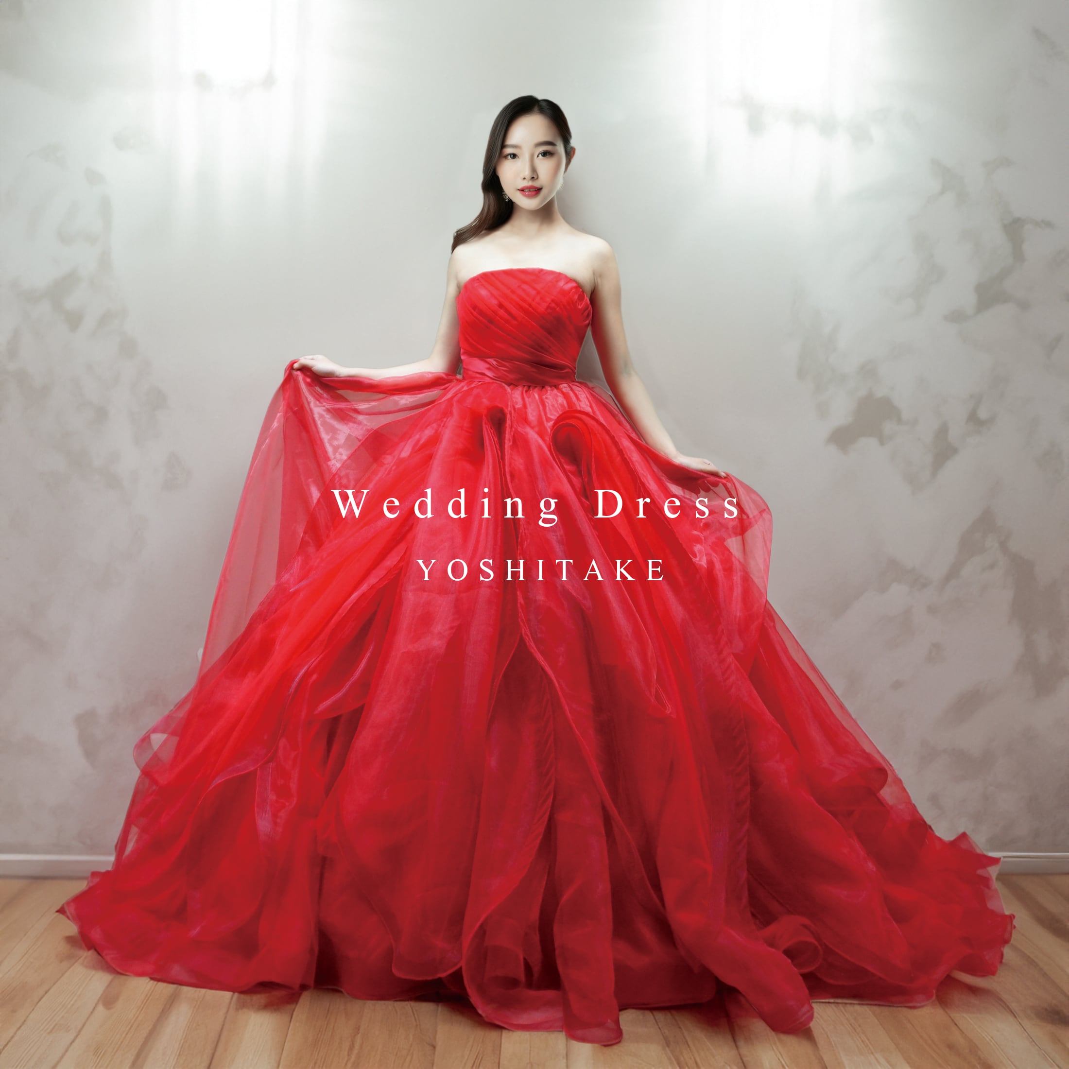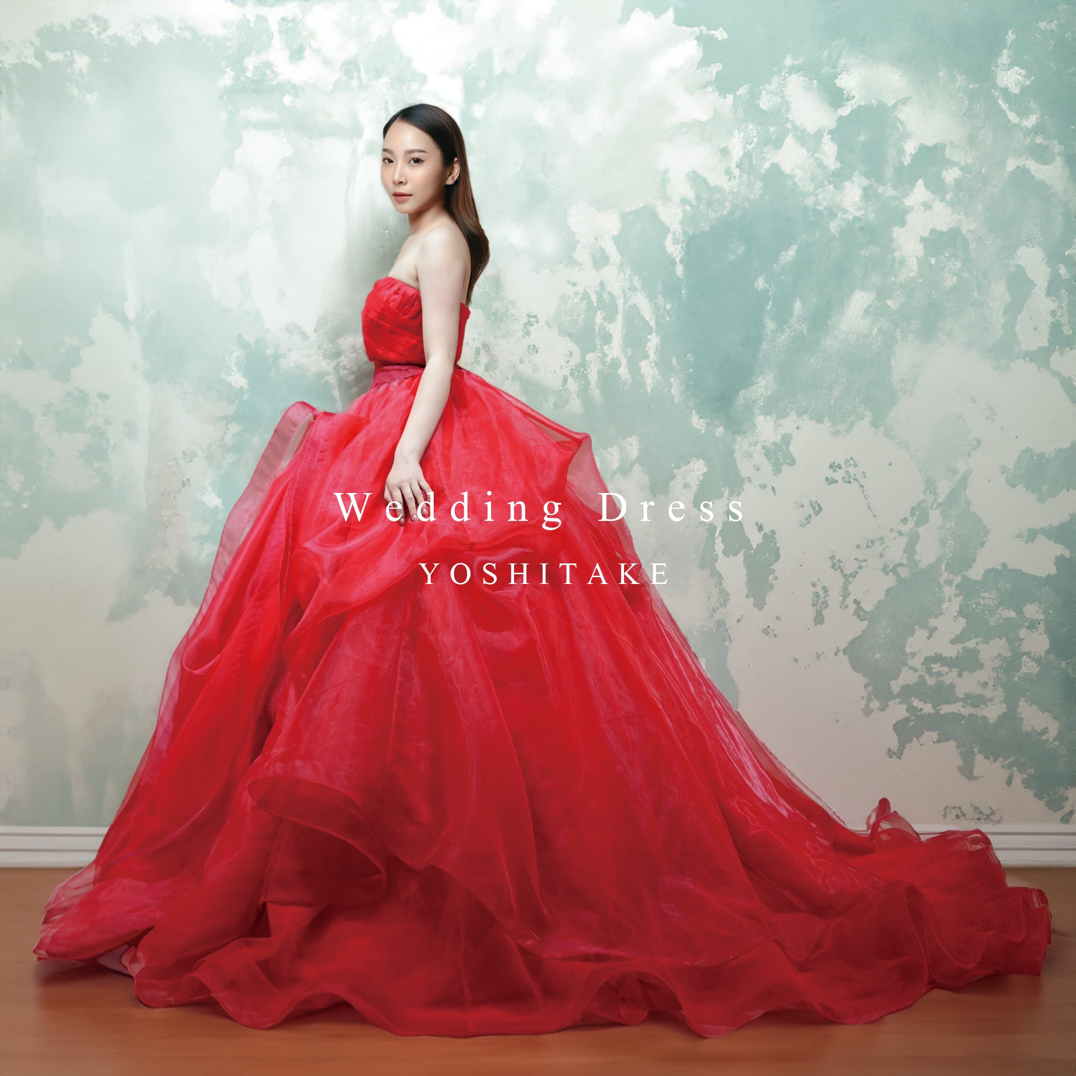 印象的なレッドカラーがドラマティックな一着。ふわっと広がるオーガンジーのスカートが、とびきり華やか。歩くたびに軽やかにゆれて、写真映えも抜群です。胸元のドレープがほどよくスタイルアップしてくれます。