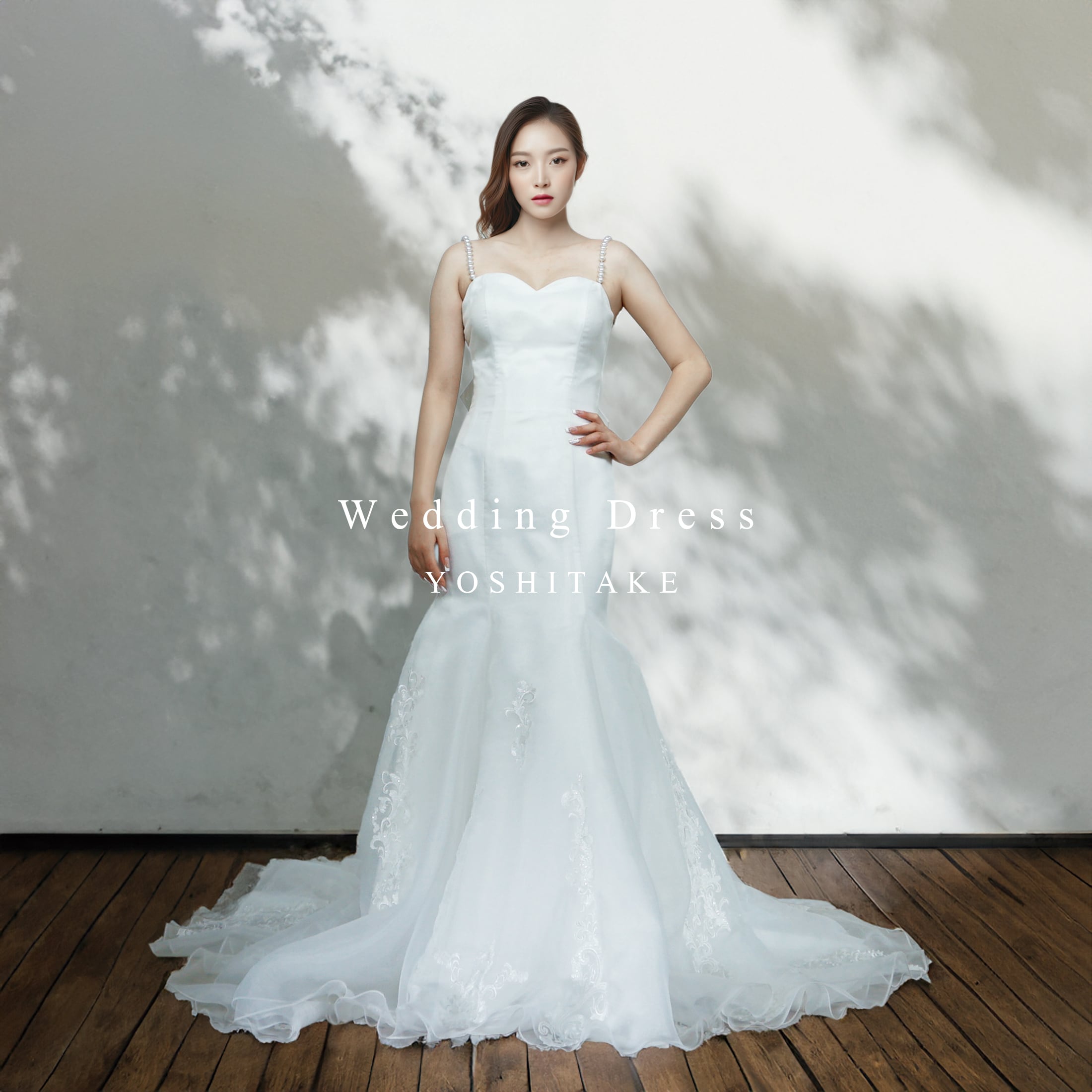 【アウトレット】ウエディングドレス ウエディングドレス.白.マーメイドドレス.レース.パールストラップ.Y2410