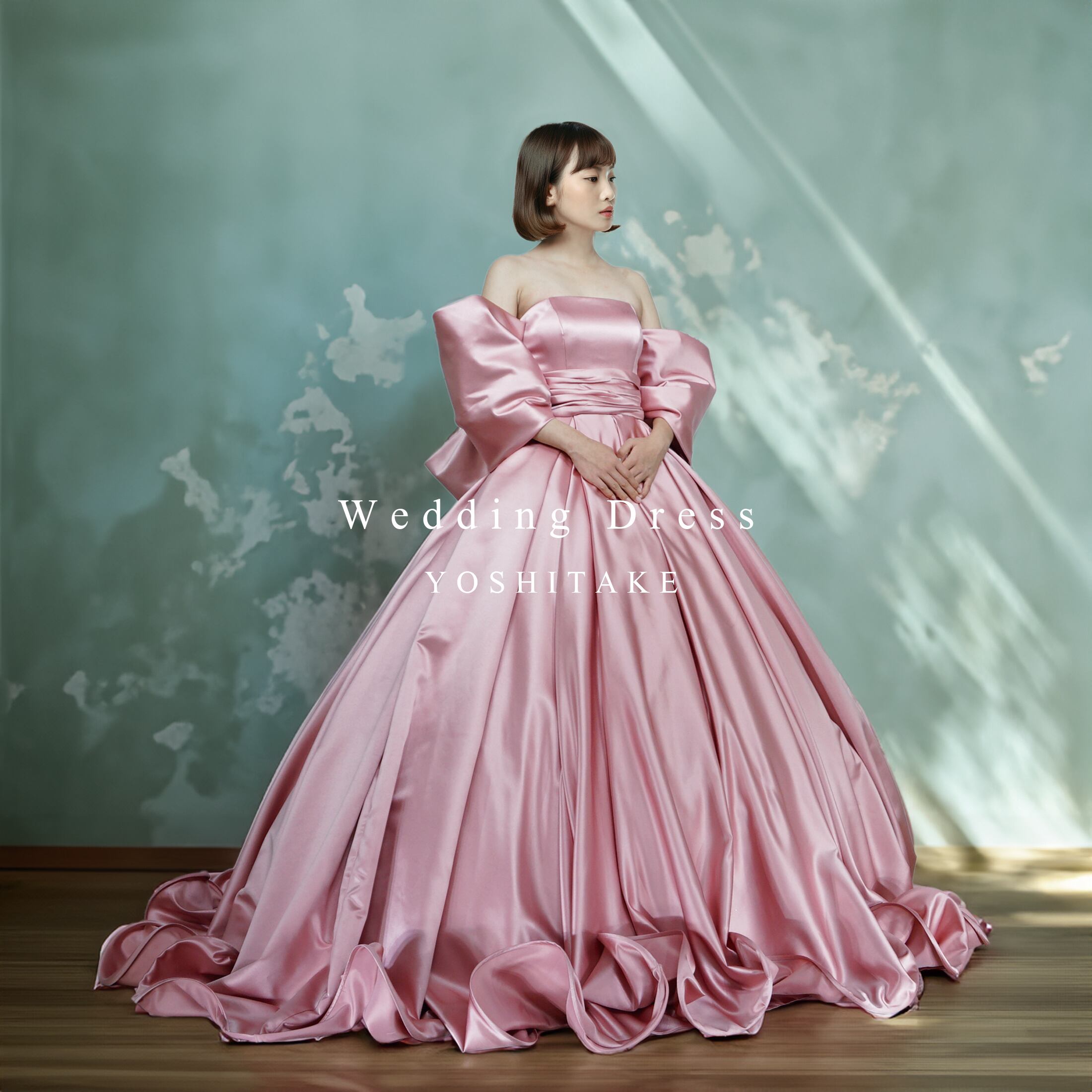 【アウトレット】ウエディングドレス(無料パニエ) ウエディングドレス.ピンク.カラードレス.プリンセスライン.リボン.Y2770