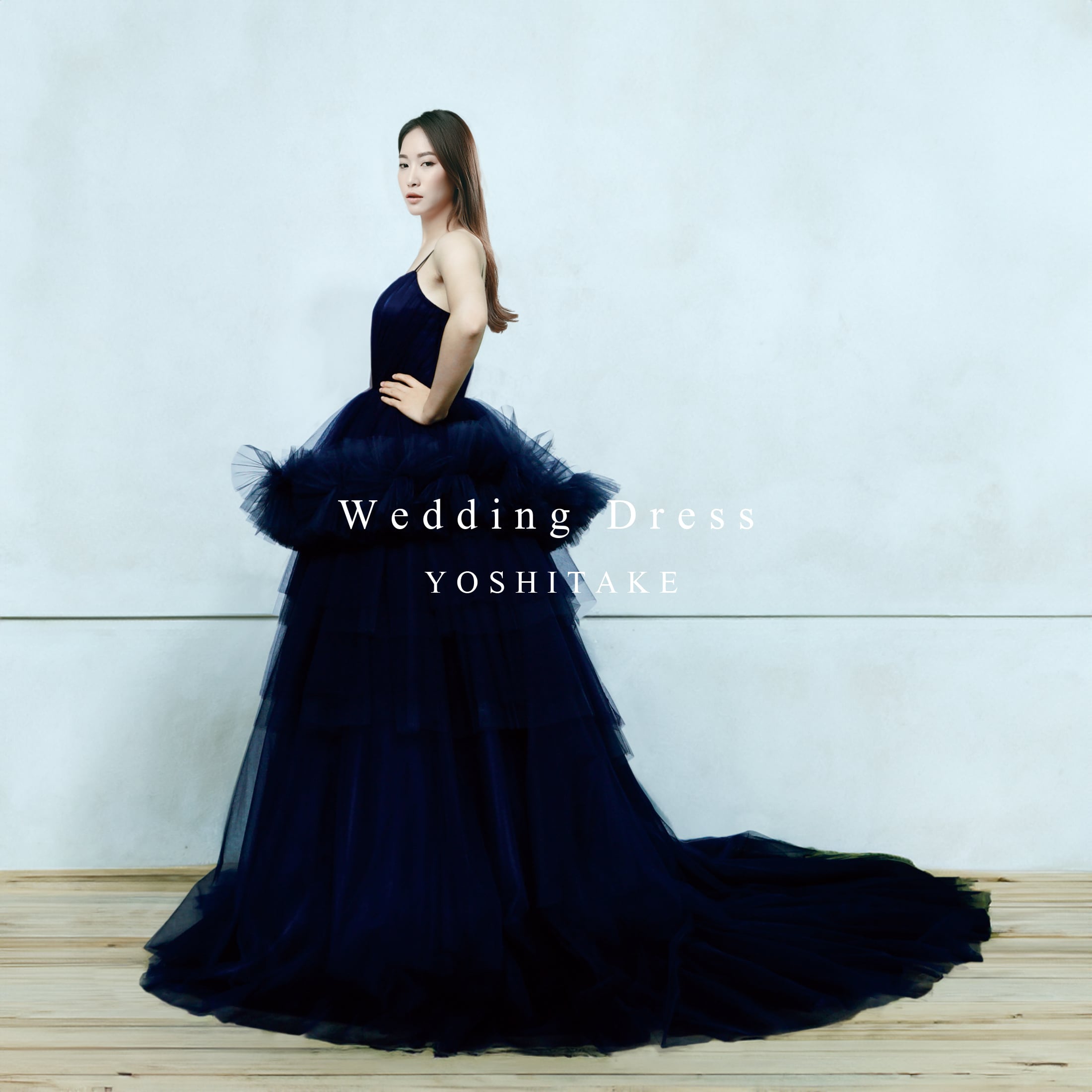 【オーダー制作】ウエディングドレス(無料パニエ) ウエディングドレス.ネイビーブルー.カラードレス.チュール.Aライン ※制作期間4週間から8週間 Y2341