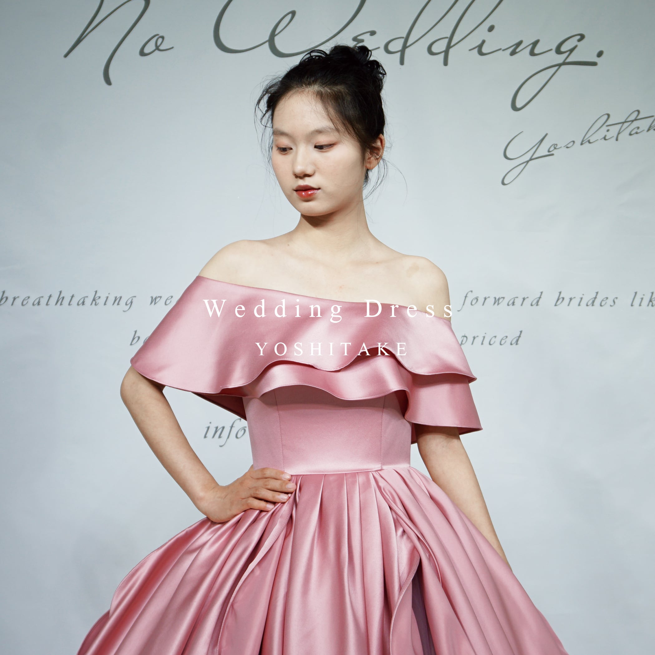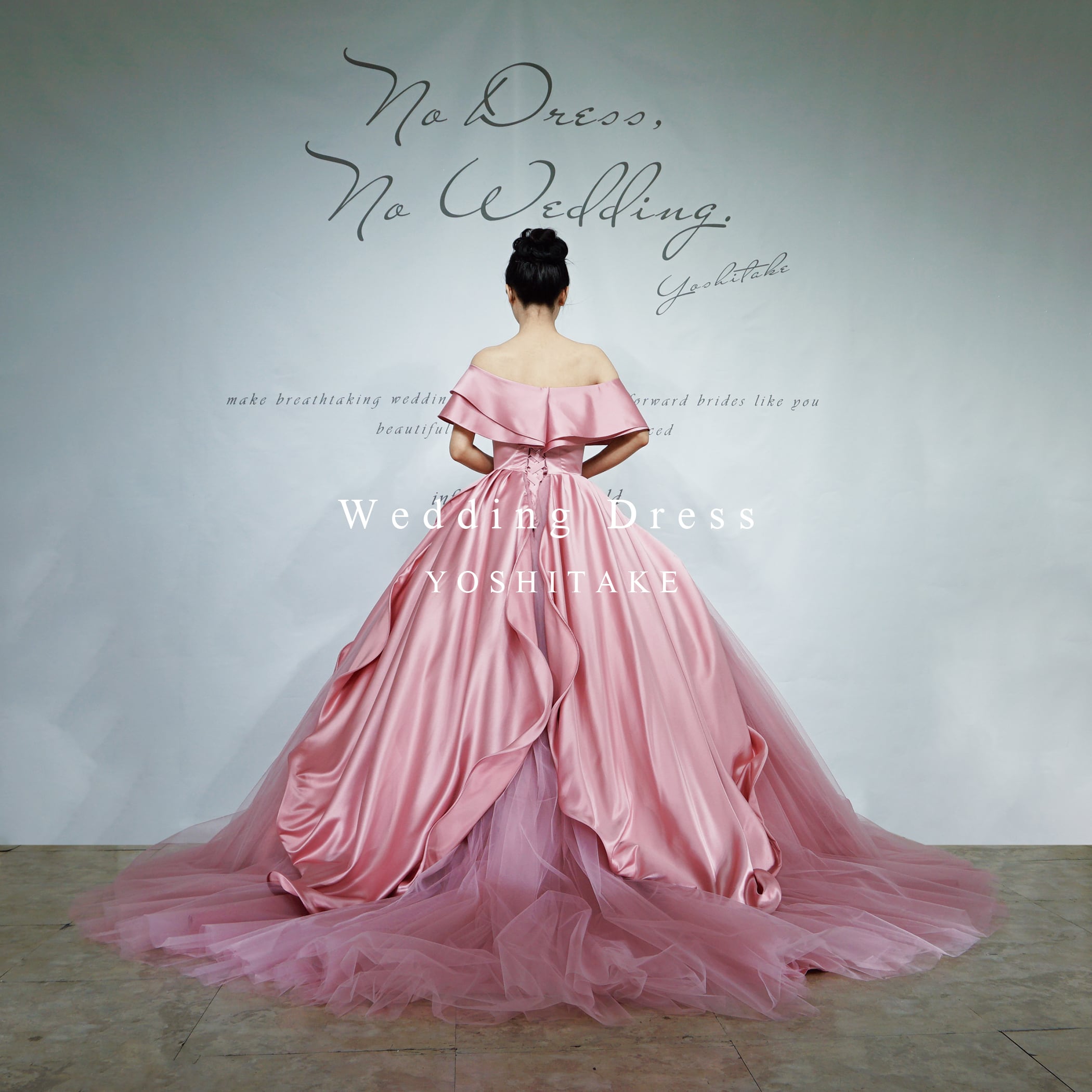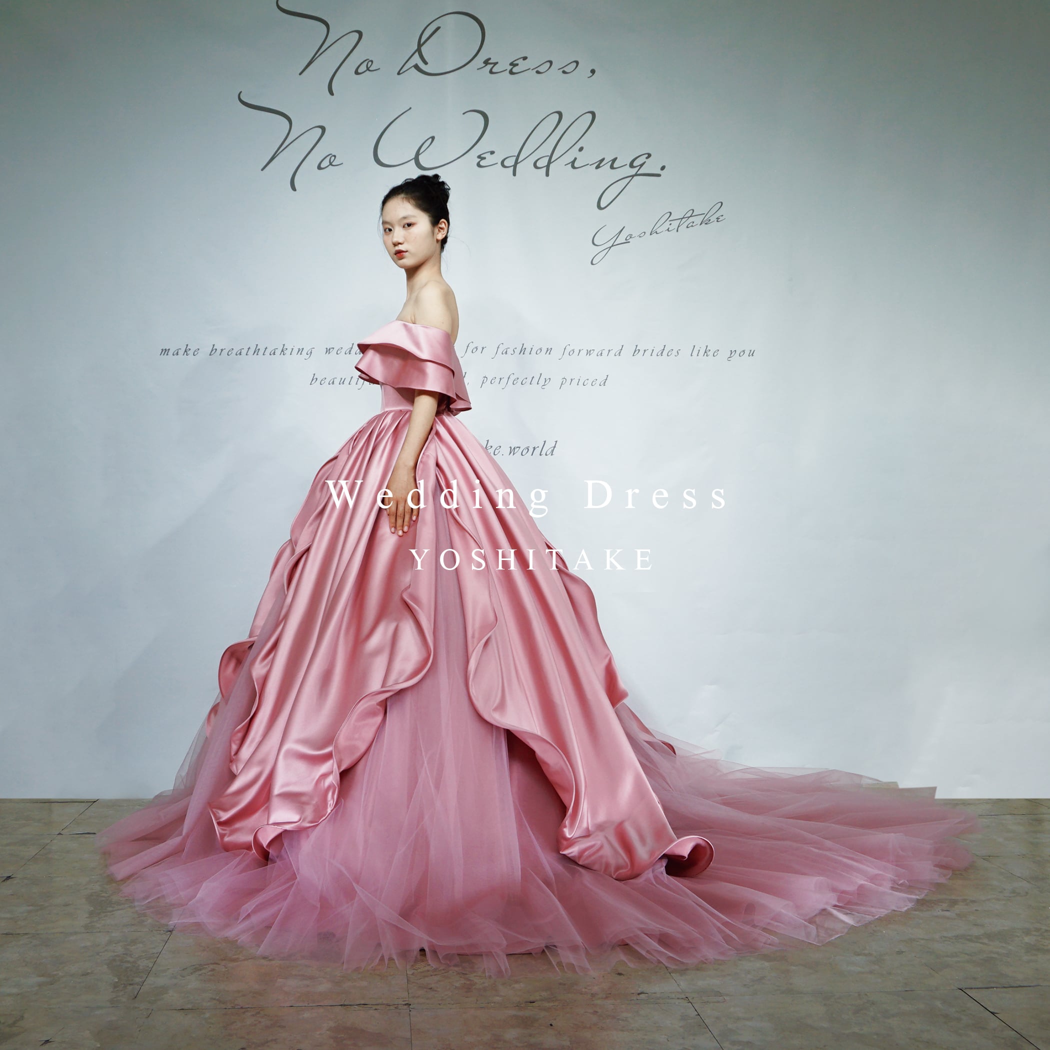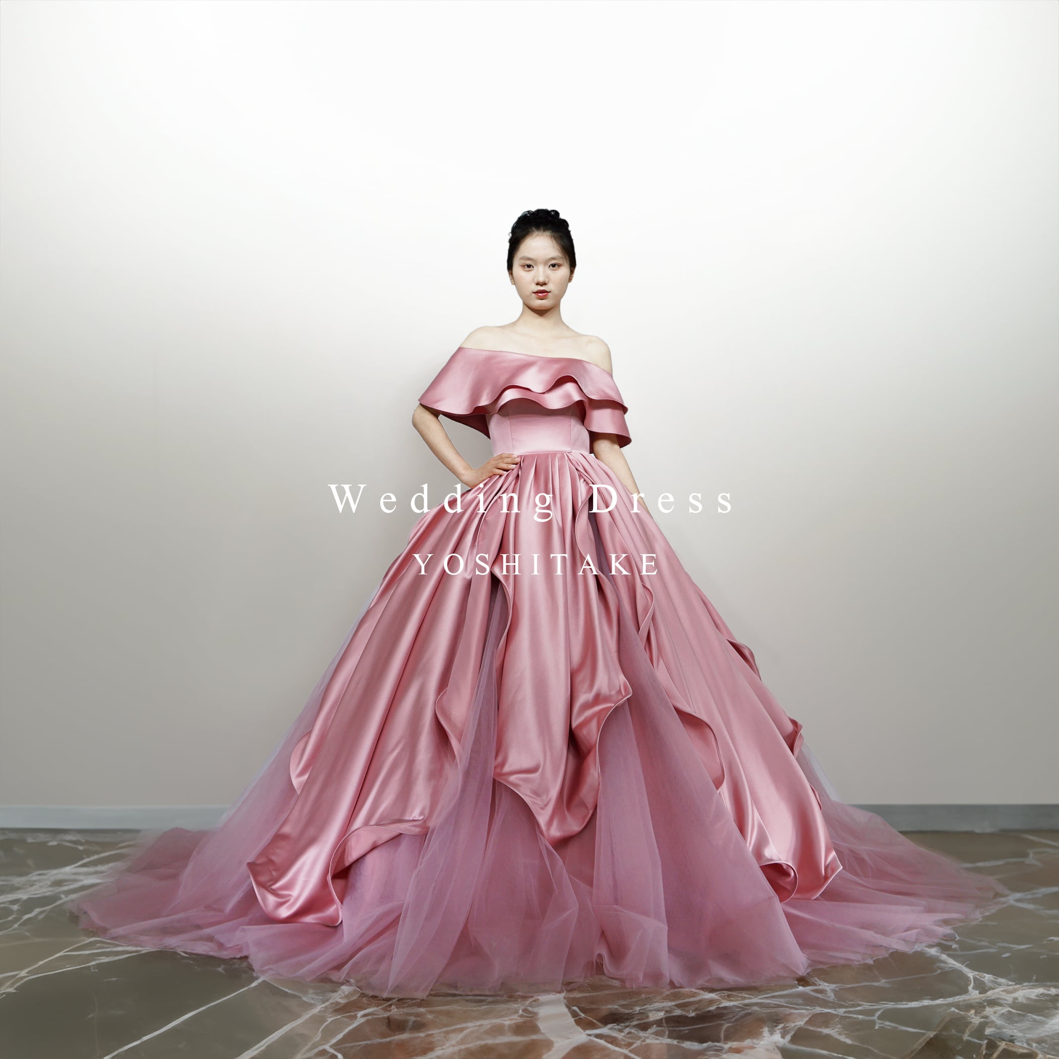 【お客様専用ページ】ウエディングドレス(無料パニエ) ウエディングドレス.くすみピンク.カラードレス.サテン.チュール.Y2630
