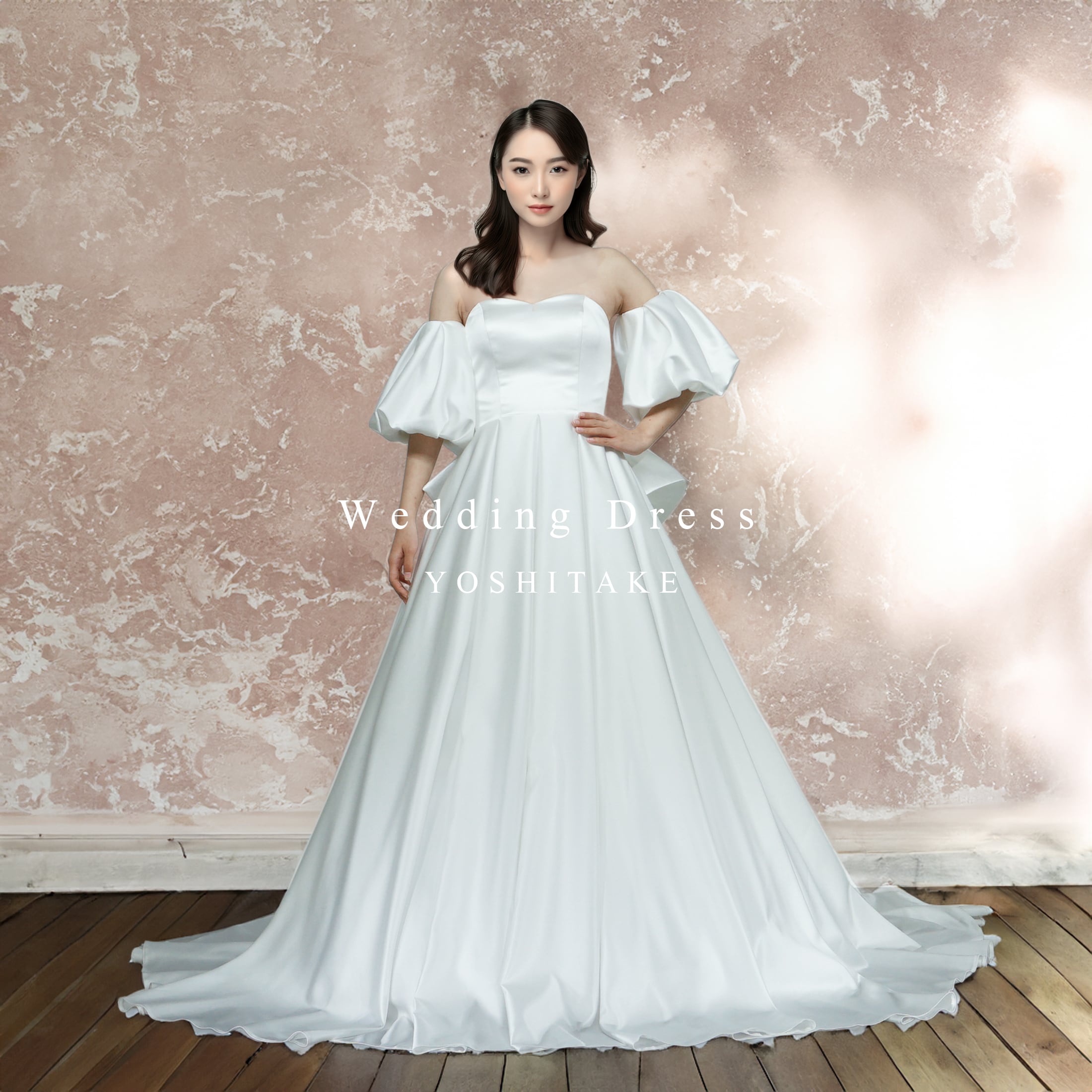 フロントはシンプルで上品なデザイン。取り外しOKなパフスリーブ付きでクラシカルな雰囲気が魅力的な一着です。バックスタイルには存在感たっぷりのビッグリボンを添えて、シンプル中にも華やかさを忘れずに。