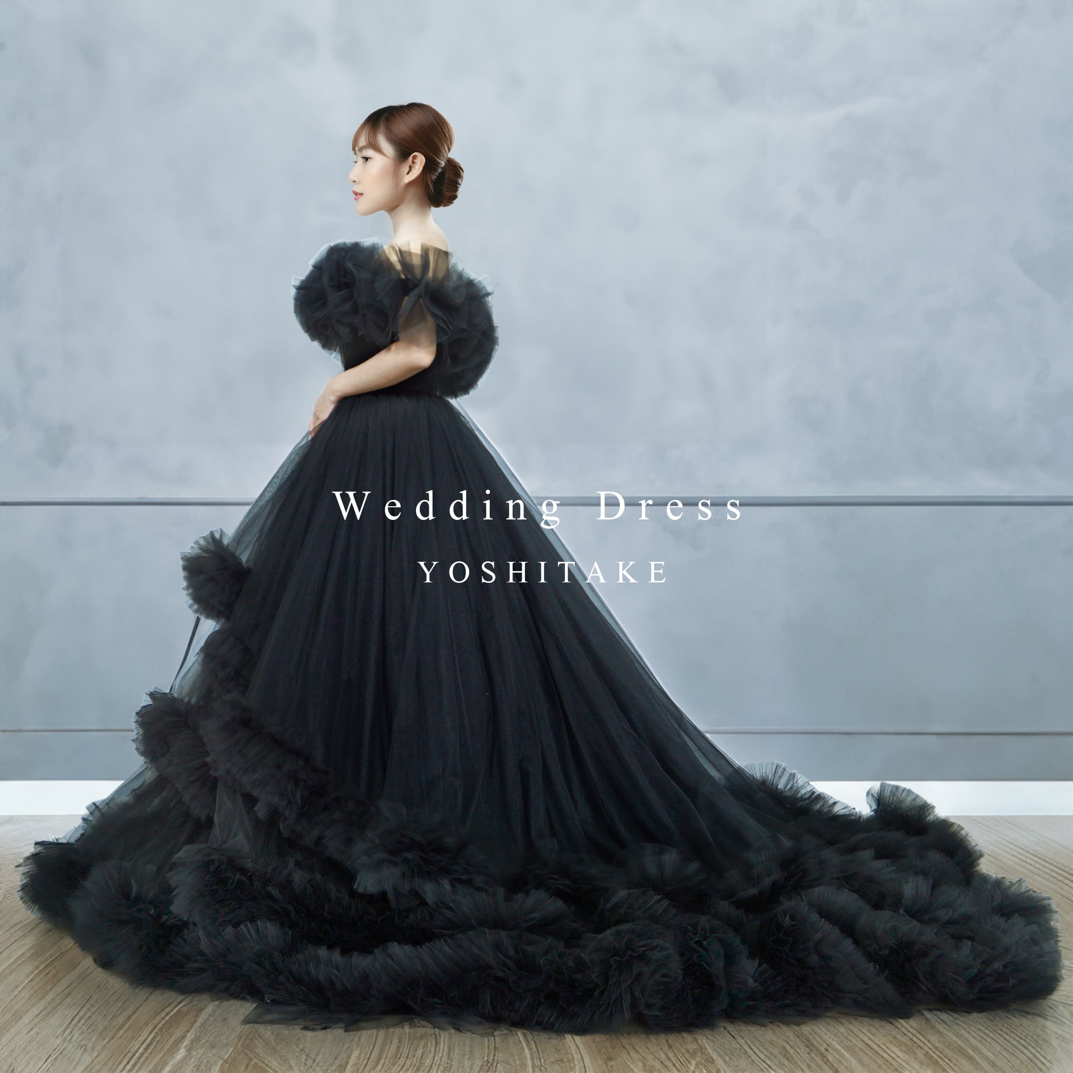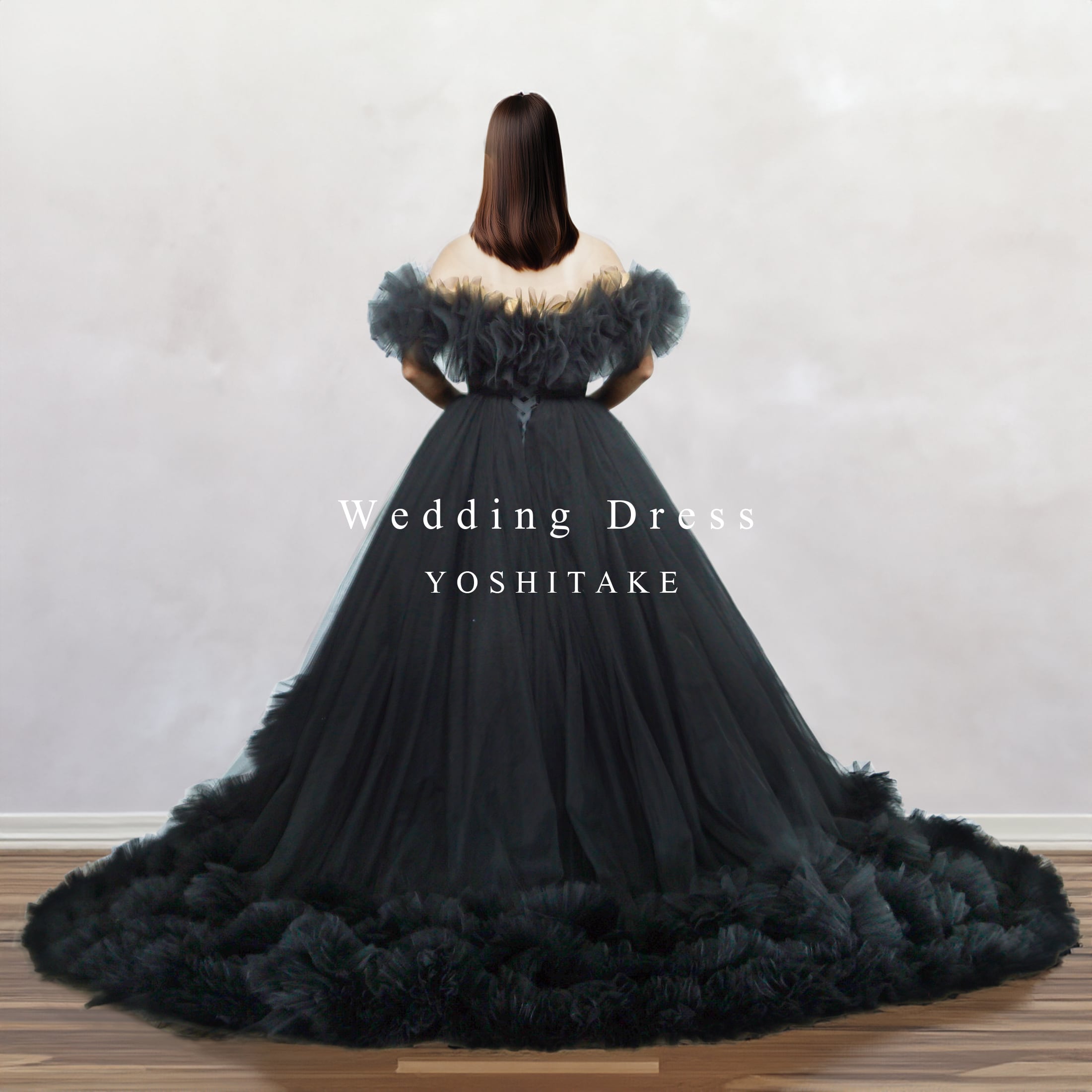 漆黒のチュールをたっぷり使った、特別感のある一着。ふわふわのオフショルダーと段々になったティアードスカートで、ゴージャスな印象に。甘くなりすぎないブラックだから、可愛いデザインでも大人っぽく着こなせます。