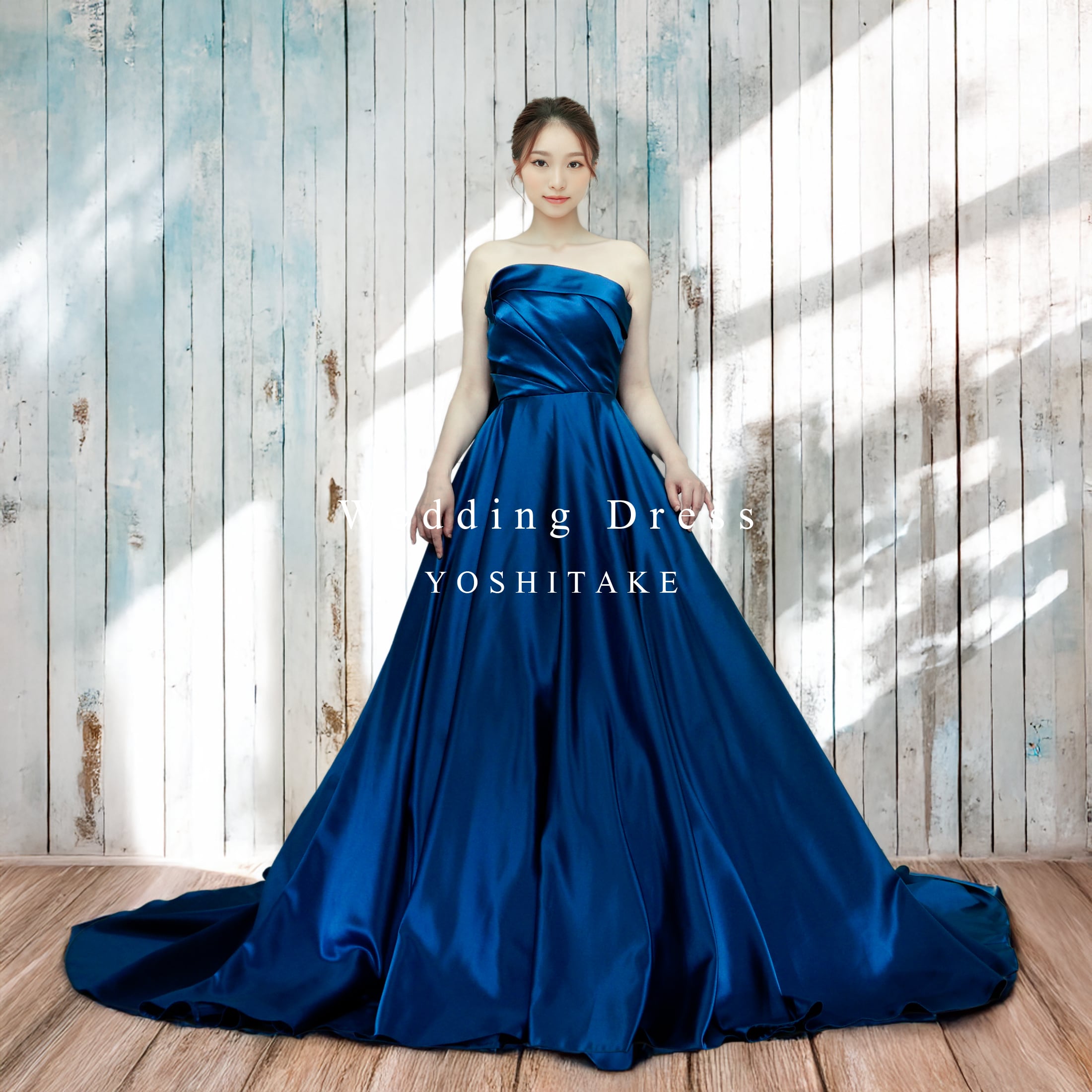 【オーダー制作】ウエディングドレス(無料パニエ) ウエディングドレス.ロイヤルブルー.カラードレス.Aライン ※制作期間4週間から8週間 Y1785-1