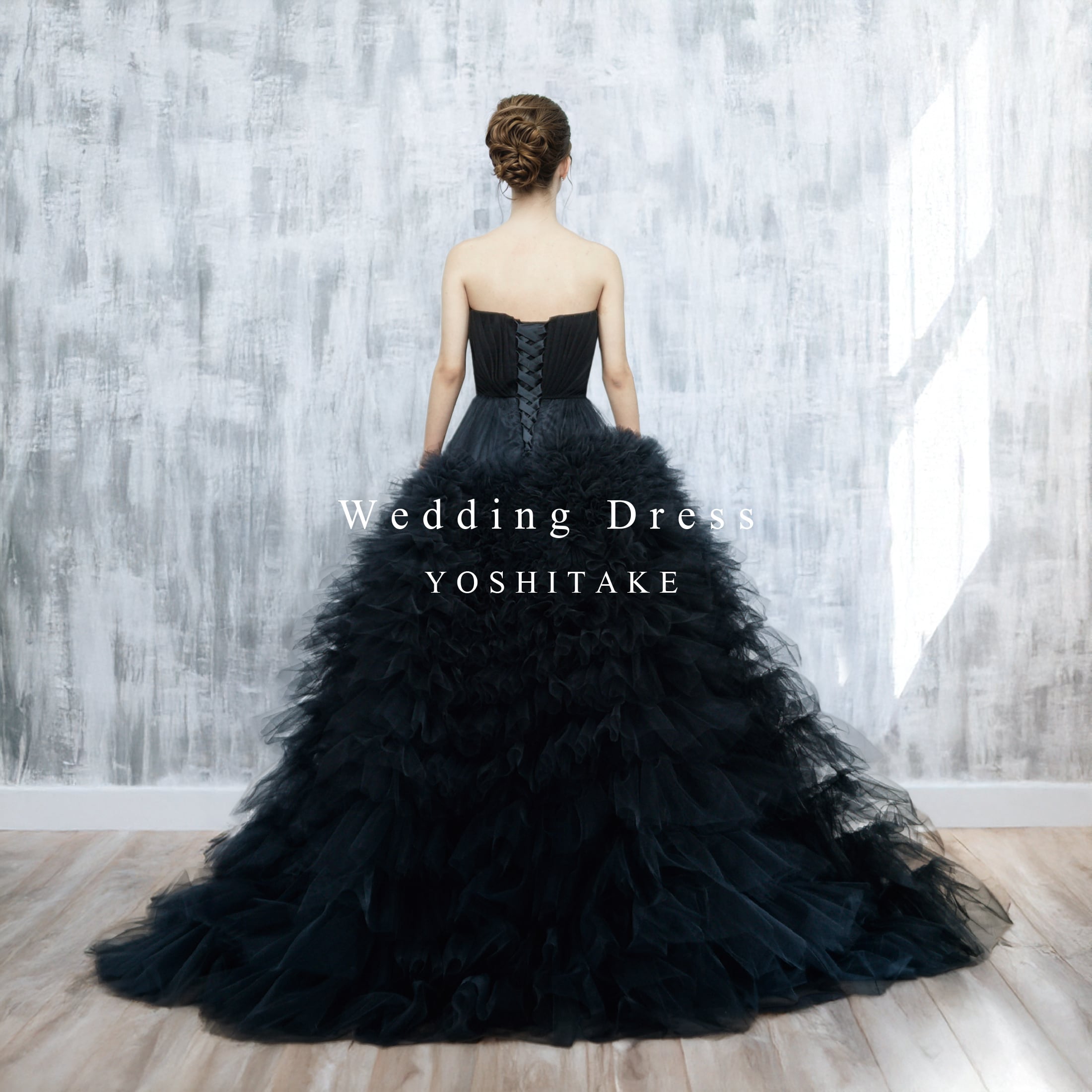 【アウトレット】ウエディングドレス(無料パニエ) ウエディングドレス.ブラック.カラードレス.チュール.Aライン.Y2623-1