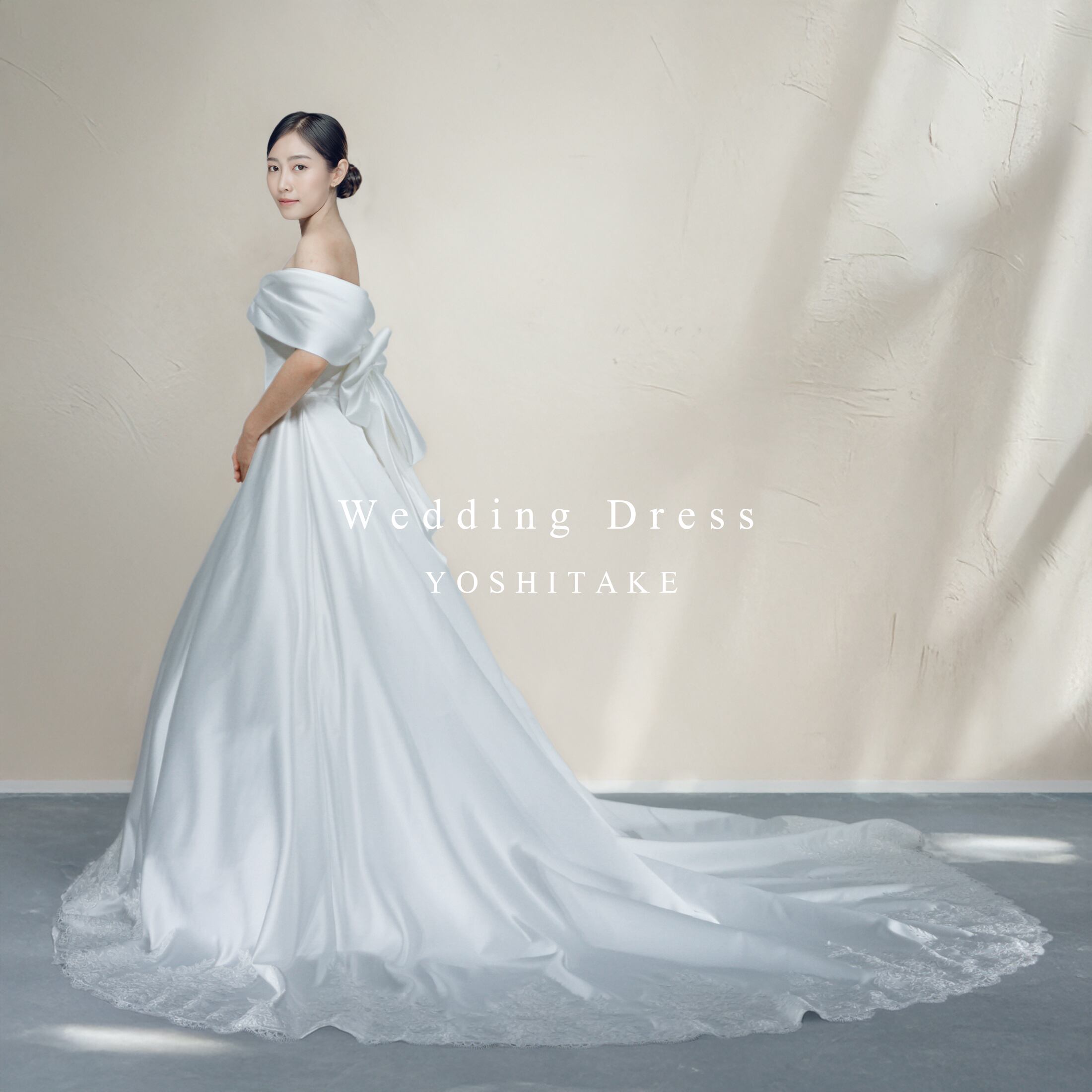 リボン風のオフショルダーで、デコルテを華やかに。バックにもリボンをプラスして、後ろ姿までしっかり可愛く。ふんわり広がるスカートの裾にはレースをあしらいました。上品も可愛いも手に入る、欲張りな一着。