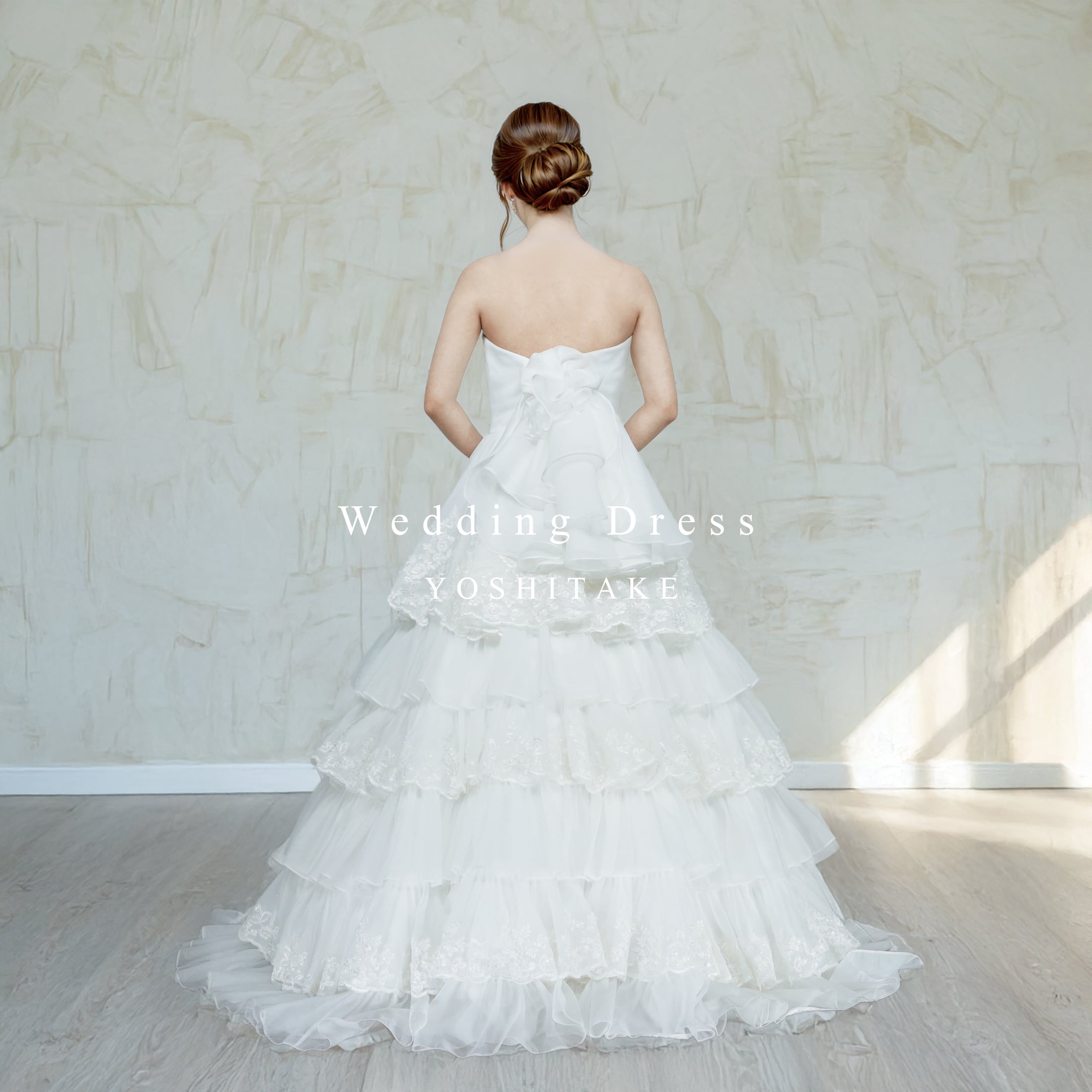 【アウトレット】ウエディングドレス(無料パニエ) ウエディングドレス.白.レース.ティアードスカート.バックリボン.Y2369-1
