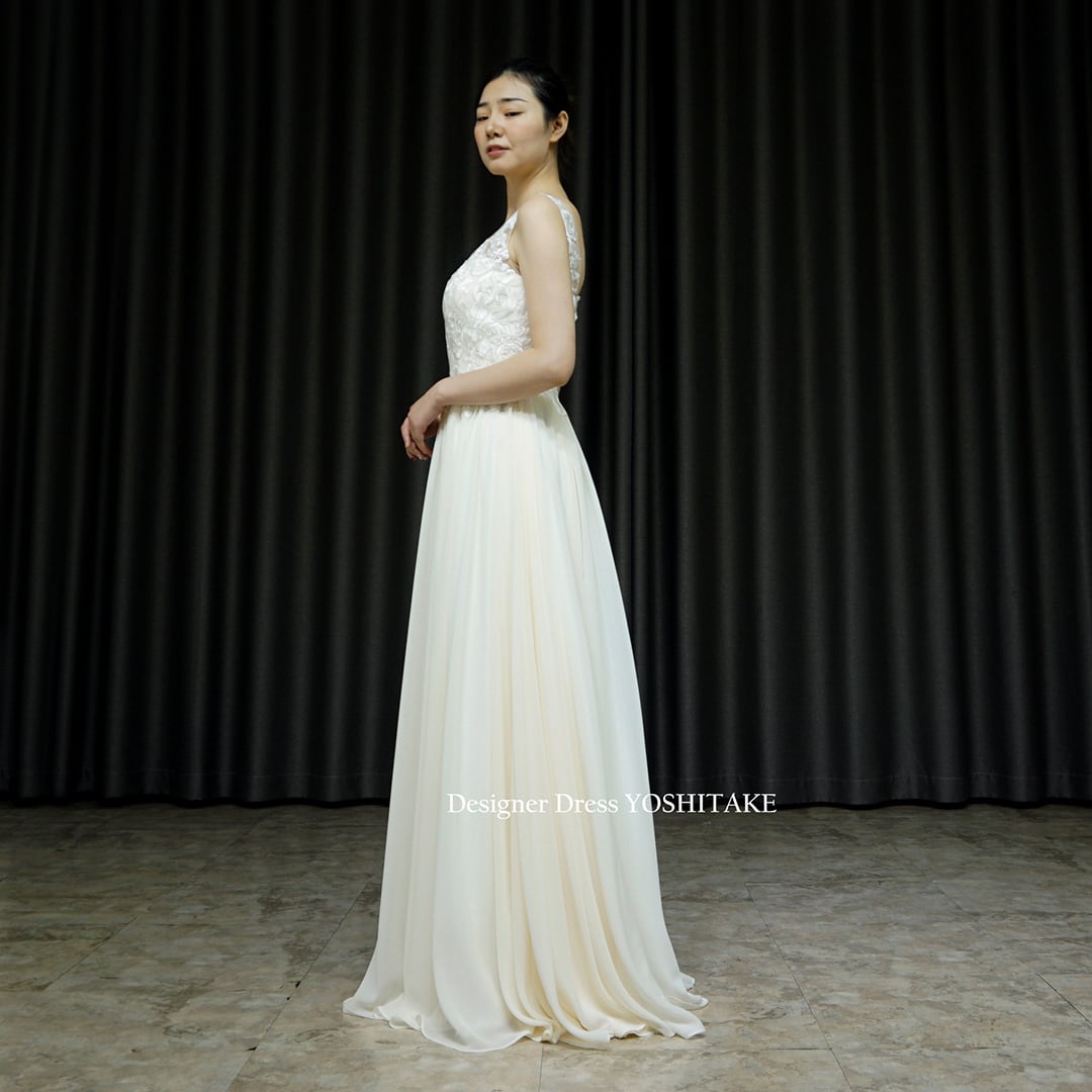 【オーダー制作】ウエディングドレス ウエディングスレンダーシフォンドレス.オフホワイト.フォトウエディング.ガーデン ※制作期間4週間から8週間