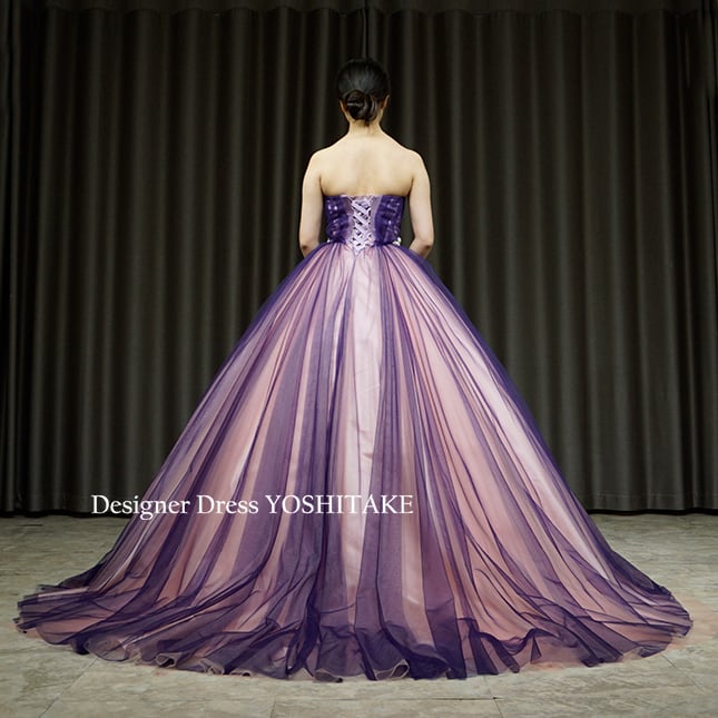 【オーダー制作】ウエディングドレス(無料パニエ) 紫とピンクのクリエイティブなウエディングビジュードレス(パニエ付)披露宴/演奏会 ※制作期間4週間から8週間
