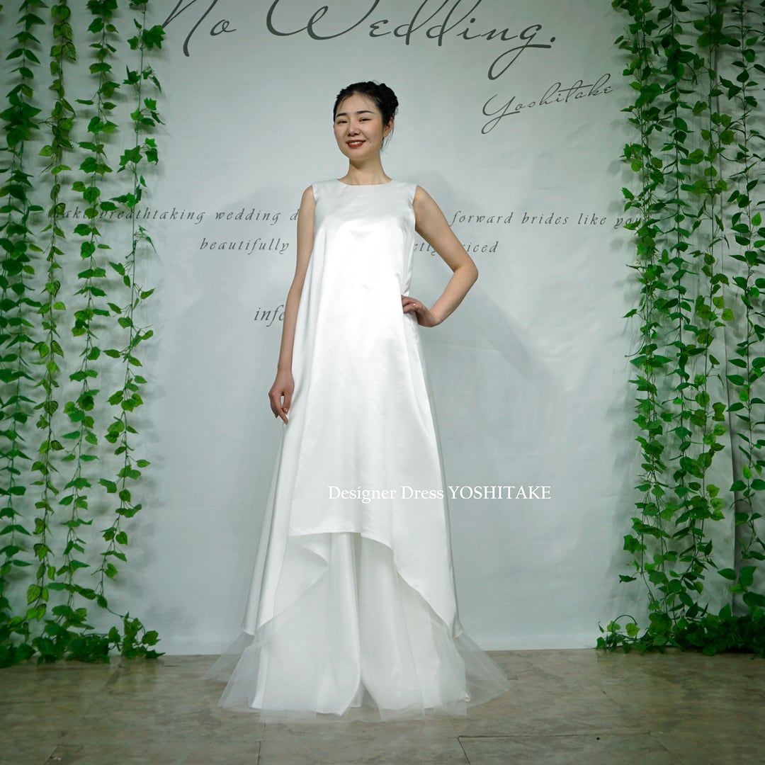 カジュアルドレスとしてマタニティードレスとしてオリジナルで制作しました。大変珍しいデザインだと思います。スカートからはちらりとチュールが見えた細いスレンダードレス。切り返しなしのゆったりデザインです。 価格は、実店舗にご来店せず、 ウェブ上のみでご購入されるお客様は 消費税分の費用を割り引かせていただいております。 ウェブ特別価格となっております。 大阪店で実物をご確認いただけます。
