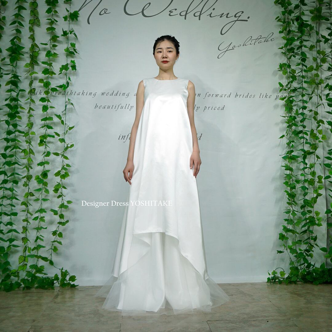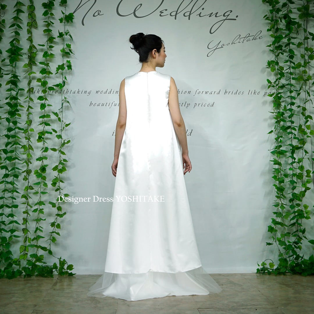 カジュアルドレスとしてマタニティードレスとしてオリジナルで制作しました。大変珍しいデザインだと思います。スカートからはちらりとチュールが見えた細いスレンダードレス。切り返しなしのゆったりデザインです。