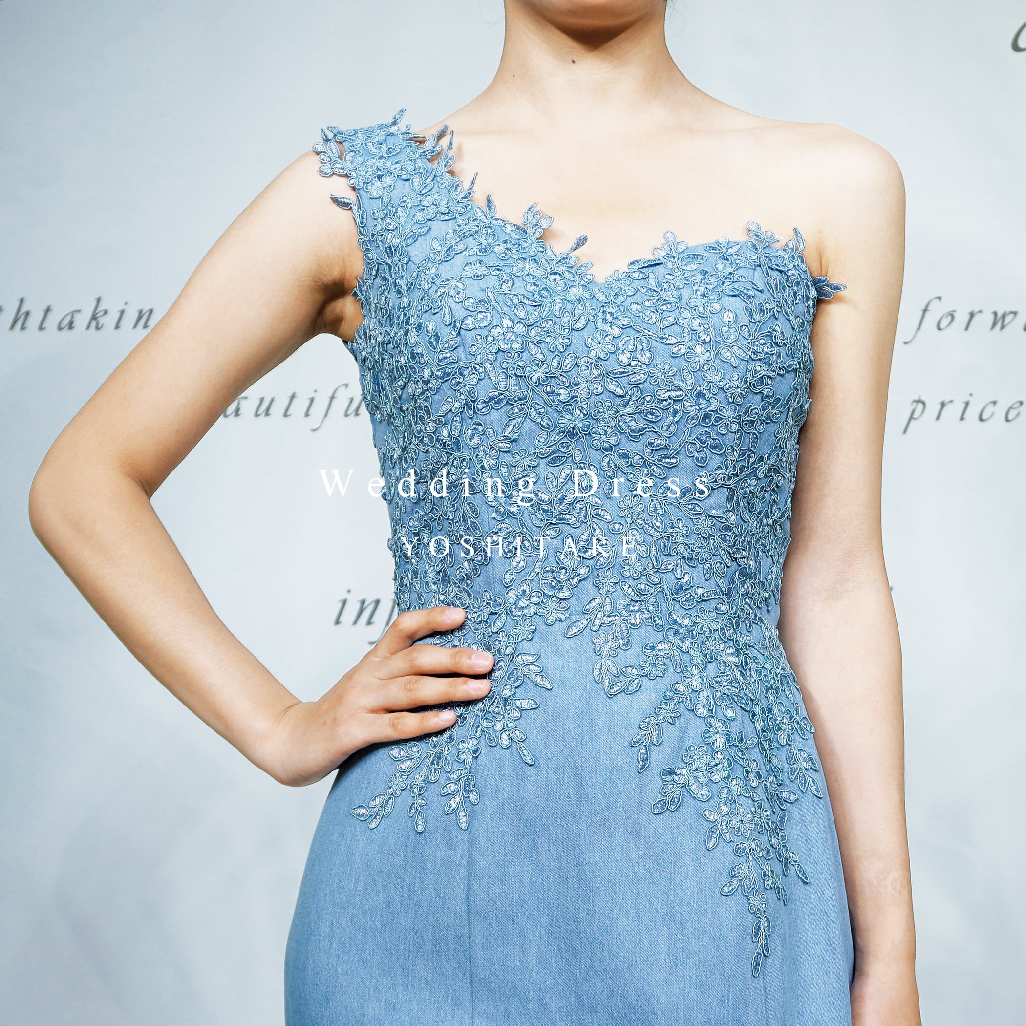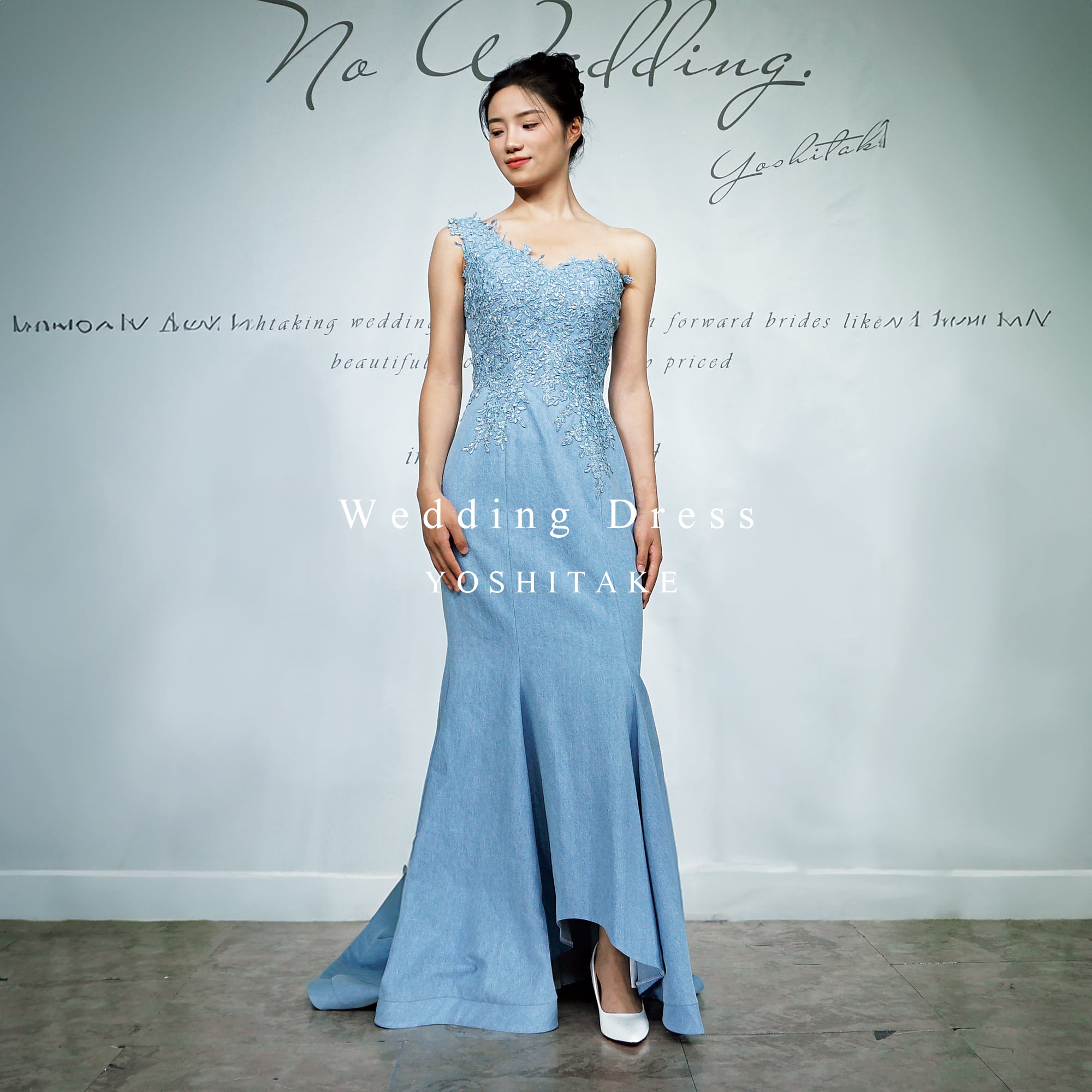 【オーダー制作】ウエディングドレス ウエディングドレス.ブルーデニム.カラードレス.マーメイド.ワンショルダー ※制作期間3週間から6週間 Y2327
