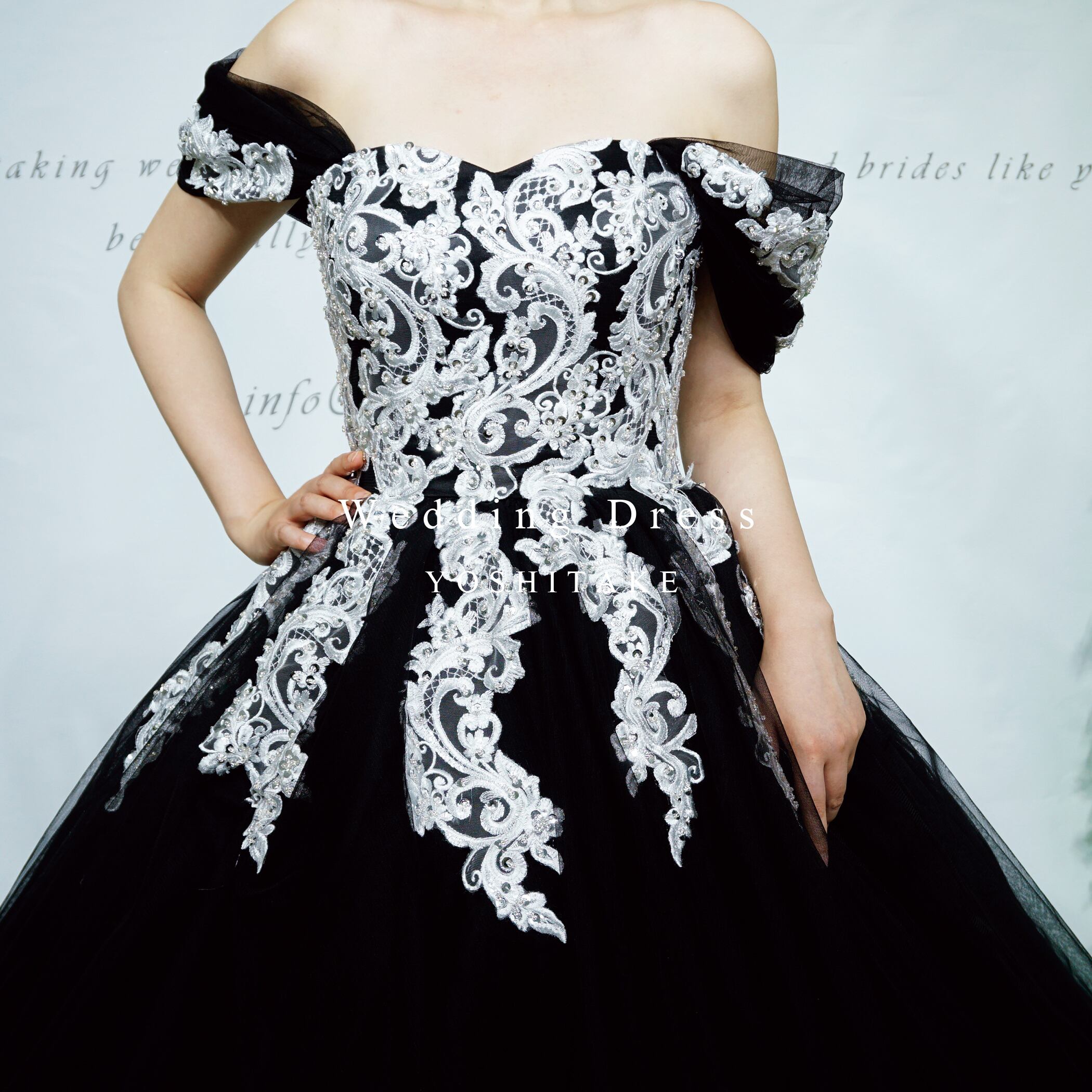 【サンプルドレス】ウエディングドレス(無料パニエ) ウエディングドレス.ブラック.カラードレス.刺繍.チュール.Aライン Y2269